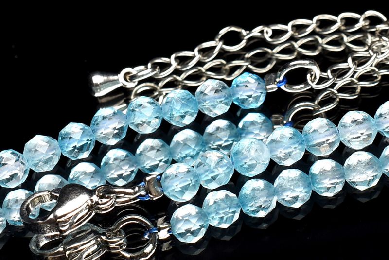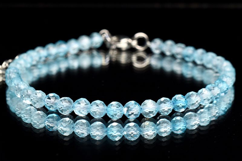 透明ブルー ブルーアパタイト 4mm ボールカット アジャスター付き ブレスレット 1個売り _B1445