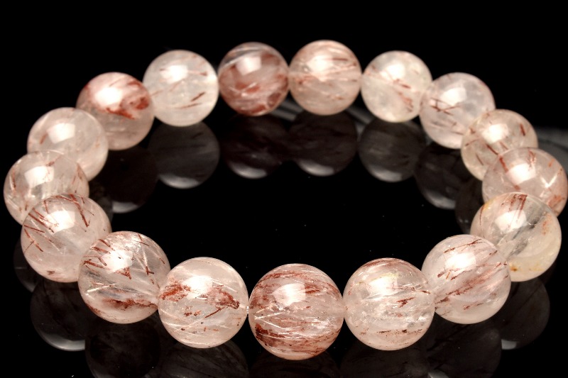【1点物】希少カラー ホワイト・レッドトルマリンインクォーツ 12-12.5mm ブレスレット _MA4540