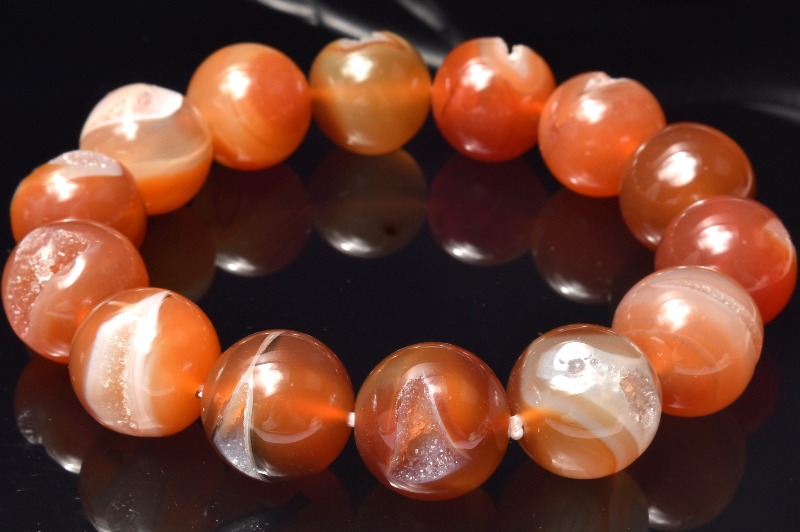材質赤縞瑪瑙と水晶の共生 15.5-16mm 産地:チベット