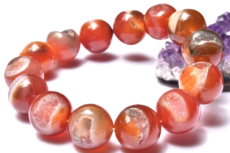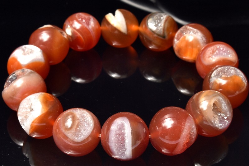 【1点物】大珠◇笑口ジオード 赤縞瑪瑙と水晶の共生 15.5-16mm ブレスレット _MA4601