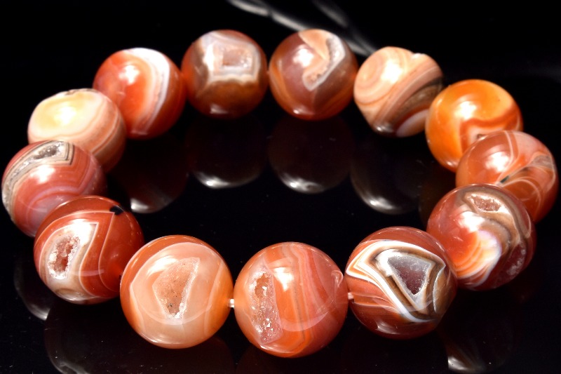 材質赤縞瑪瑙と水晶の共生 17.5-18mm 産地:チベット