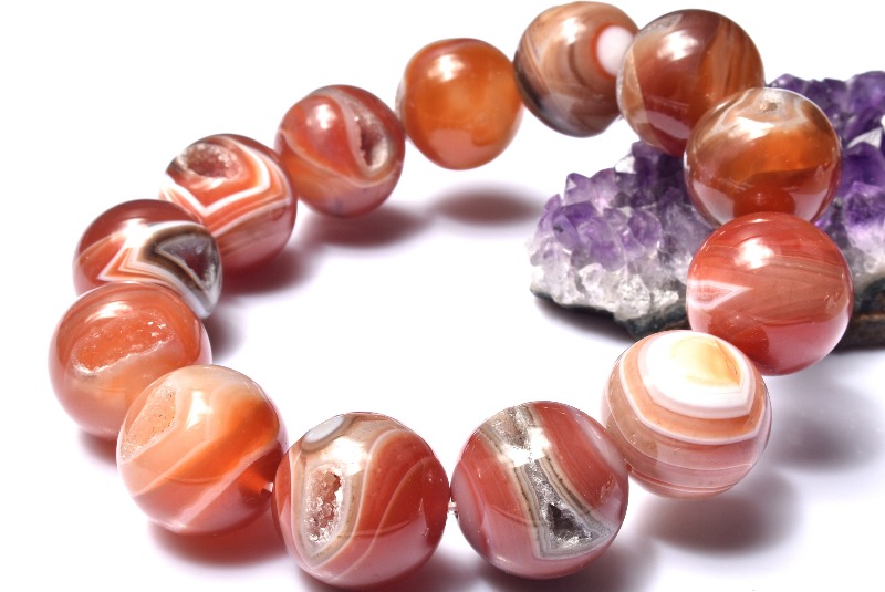 【1点物】大珠◇笑口ジオード 赤縞瑪瑙と水晶の共生 17.5-18mm ブレスレット _MA4604