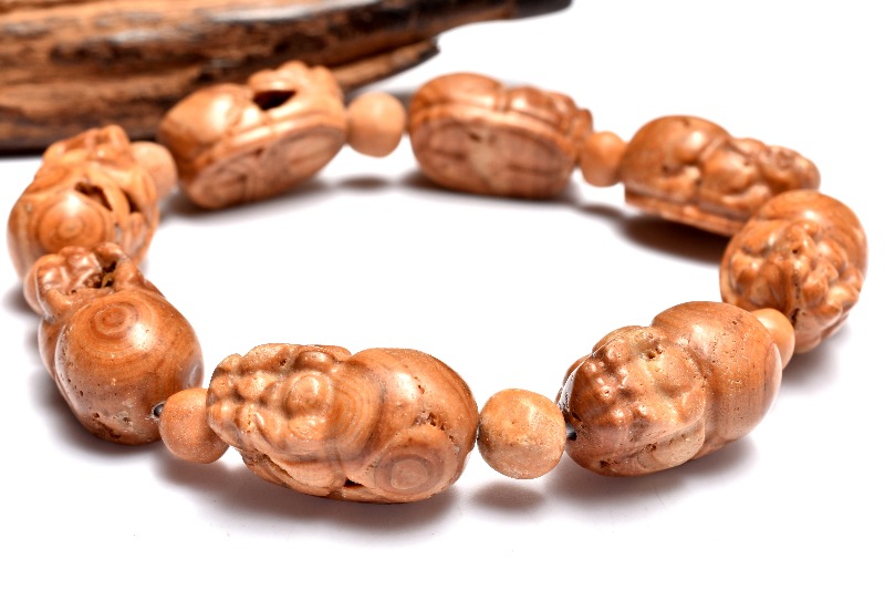 【1点物】仏眼 龍宮舎利石 21.5-22x12-12.5(丸玉6-7)mm 貔貅彫刻 ブレスレット _MA4618