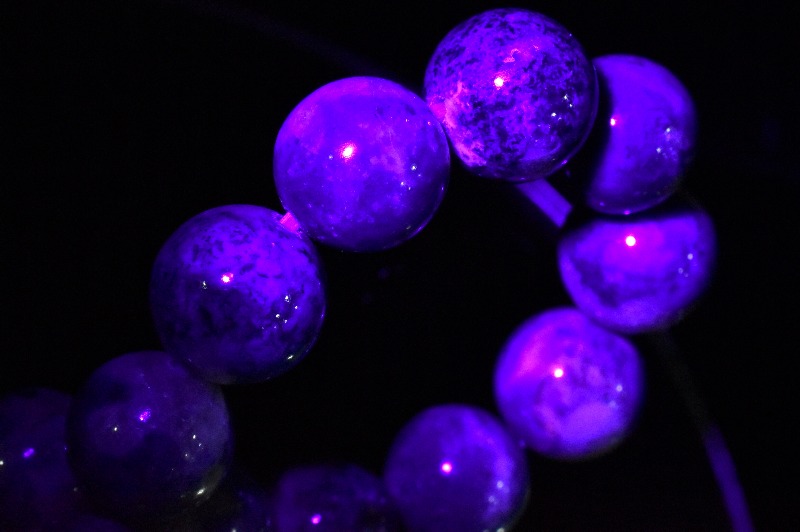 同じファトクロミズムの特徴をもつ石たちの中でも、ハックマナイトは紫外線を当ててから一定時間変色が持続するという珍しい性質があり、コレクターの間でも高い人気を誇ってます。