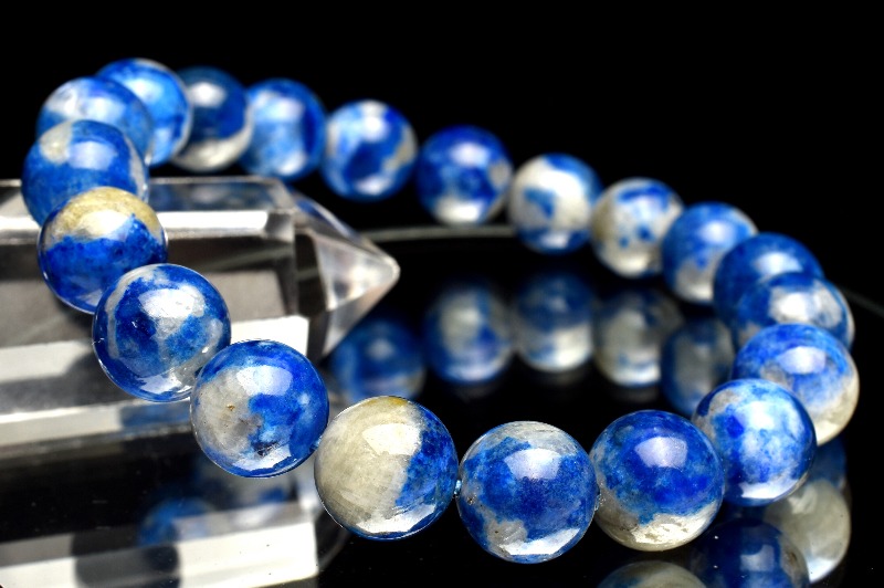 【1点物】希少◇発光鉱物 ブルーハックマナイトシリカ 9.5-10mm ブレスレット _MA4667