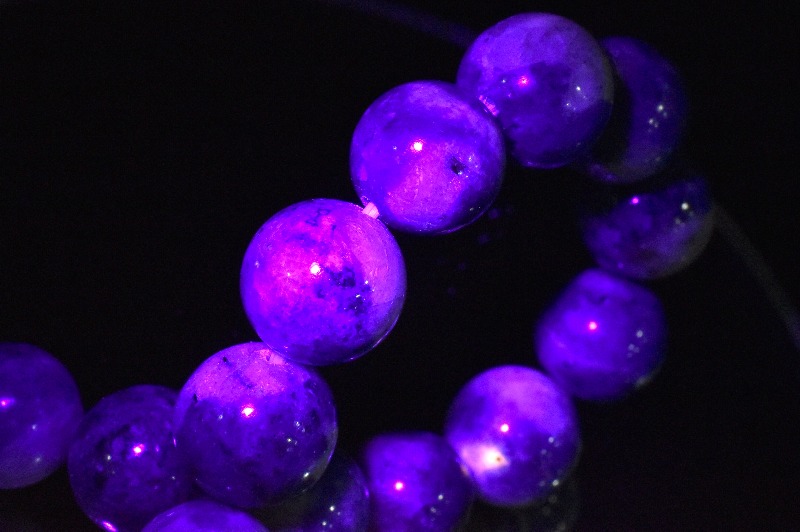 ハックマナイトは、ソーダライト(方ソーダ石)の変種で、紫外線で色が変わるファトクロミズムという不思議な特徴を持つパワーストーンです。