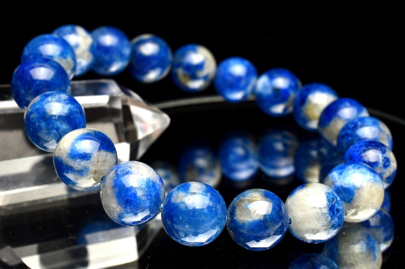 【1点物】希少◇発光鉱物 ブルーハックマナイトシリカ 9.5-10mm ブレスレット _MA4669