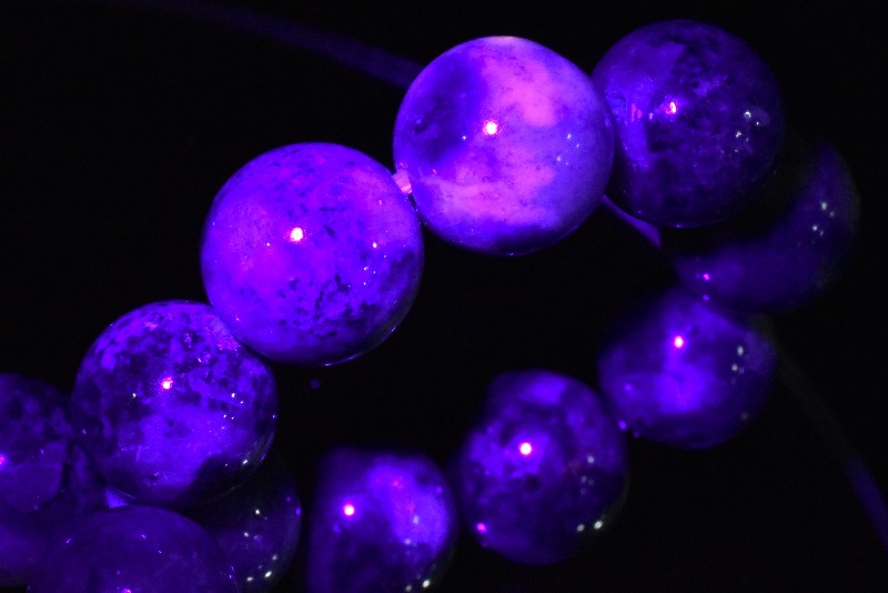 同じファトクロミズムの特徴をもつ石たちの中でも、ハックマナイトは紫外線を当ててから一定時間変色が持続するという珍しい性質があり、コレクターの間でも高い人気を誇ってます。