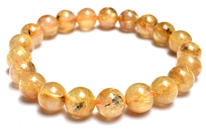 材質ヘマタイトインタイチンルチルクォーツ 9mm 産地:ブラジル