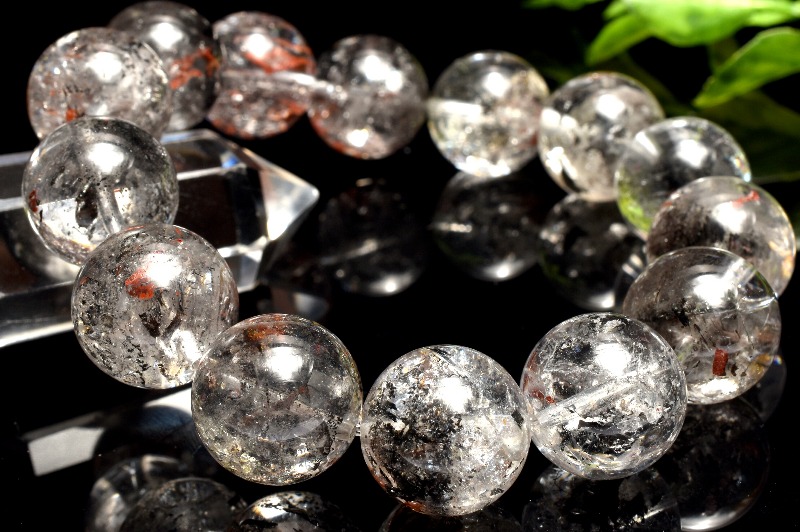 【1点物】霊峰ヒマラヤ産◇ライモナイト入り エレスチャルクォーツ 15.5mm ブレスレット _MA4687