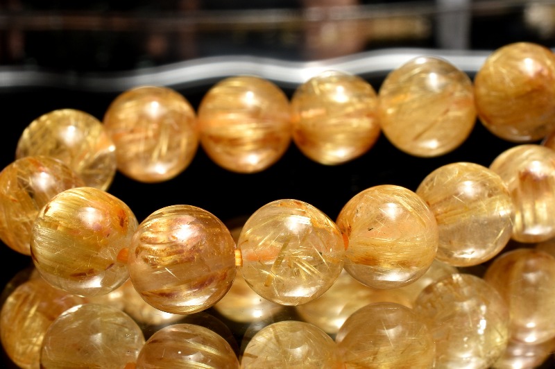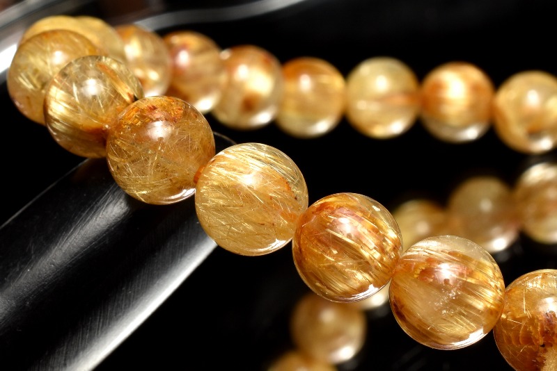 材質ゴールドタイチンルチルクォーツ 7mm 産地:ブラジル