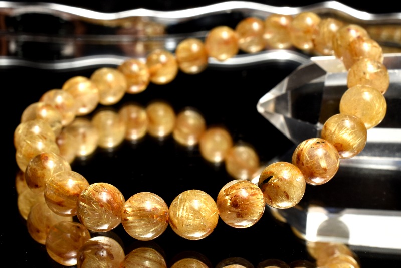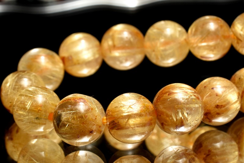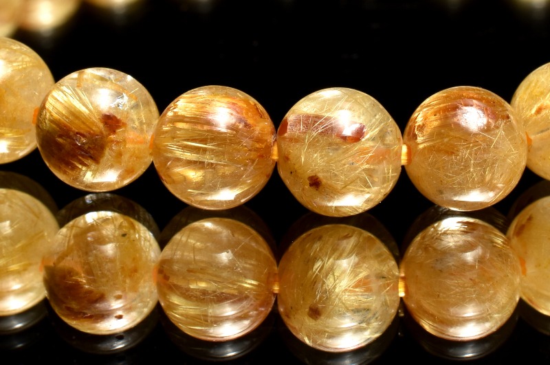 材質ゴールドタイチンルチルクォーツ 7mm 産地:ブラジル