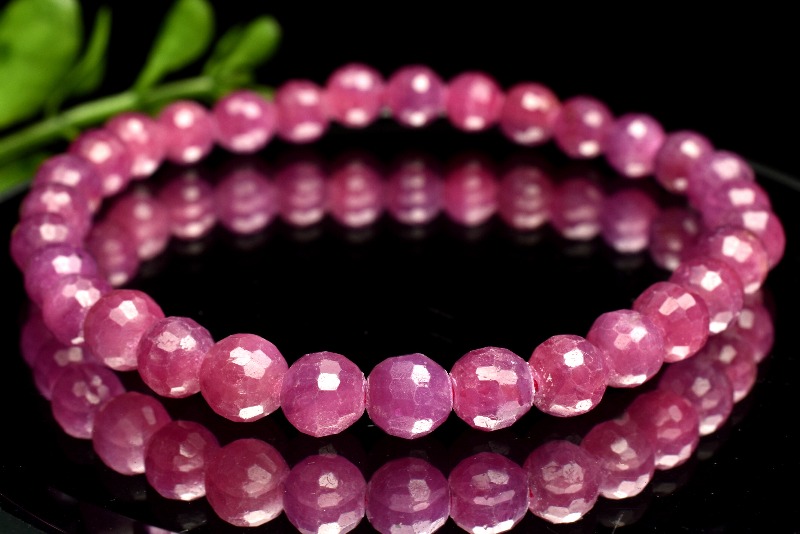 【1点物】南アフリカ産◇高品質 ルビー 6mm 128面カット ブレスレット _MA4893