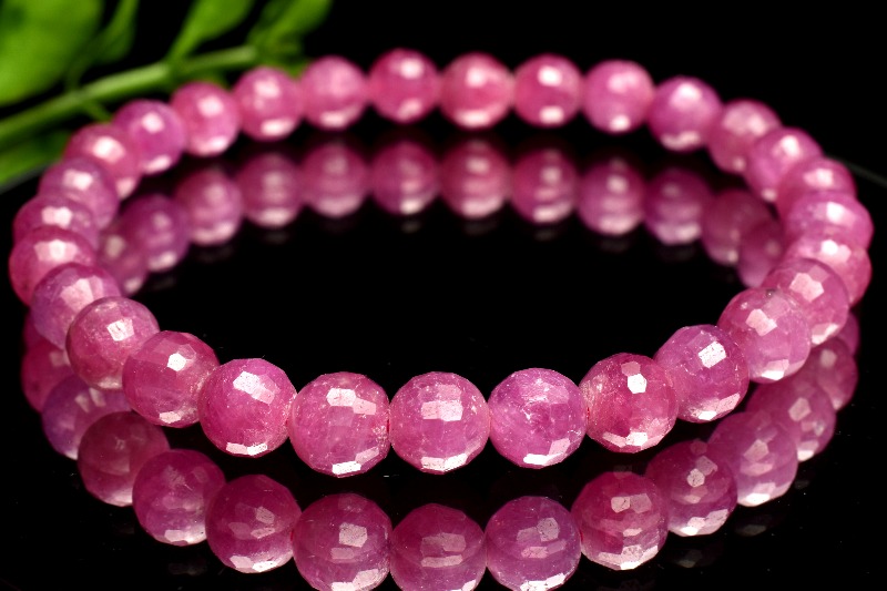 【1点物】南アフリカ産◇高品質 ルビー 6.5mm 128面カット ブレスレット _MA4894