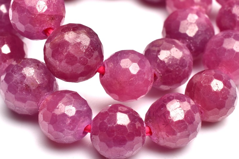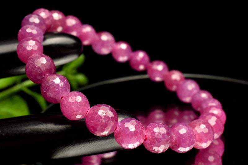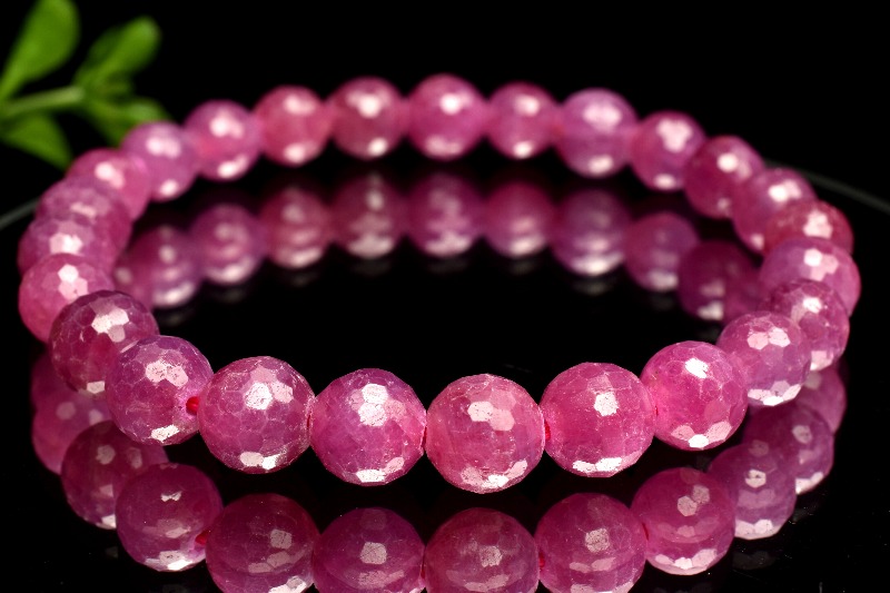 【1点物】南アフリカ産◇高品質 ルビー 7.5mm 128面カット ブレスレット _MA4896