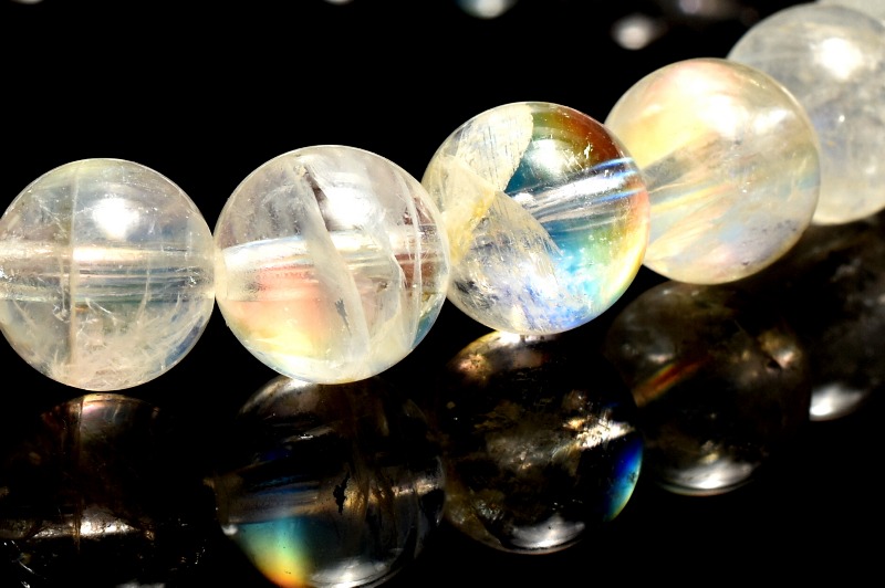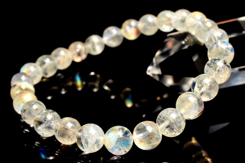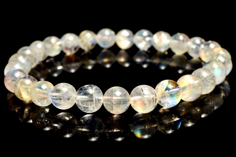 【1点物】AAAオーロラシラー☆マダガスカル産 レインボームーンストーン 6.5mm ブレスレット _MA4897