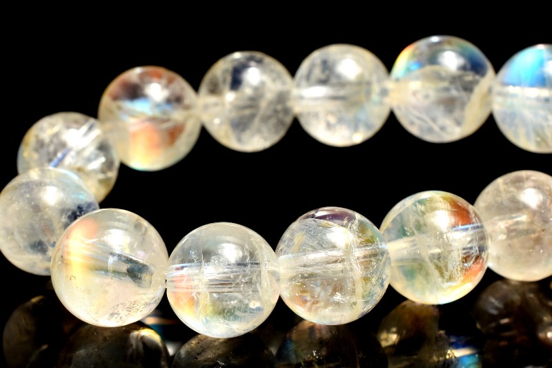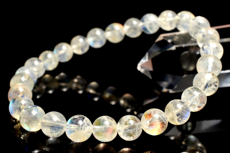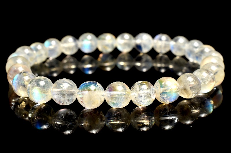 【1点物】AAAオーロラシラー☆マダガスカル産 レインボームーンストーン 6.5mm ブレスレット _MA4898