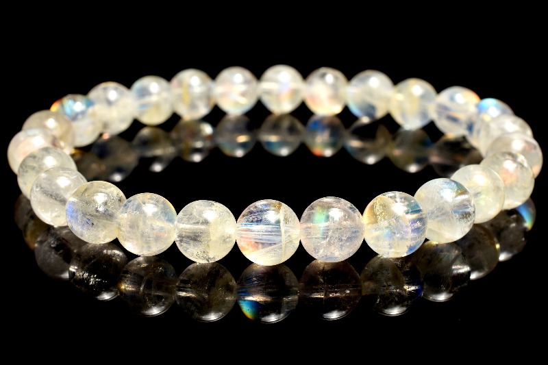 【1点物】AAAオーロラシラー☆マダガスカル産 レインボームーンストーン 7mm ブレスレット _MA4899