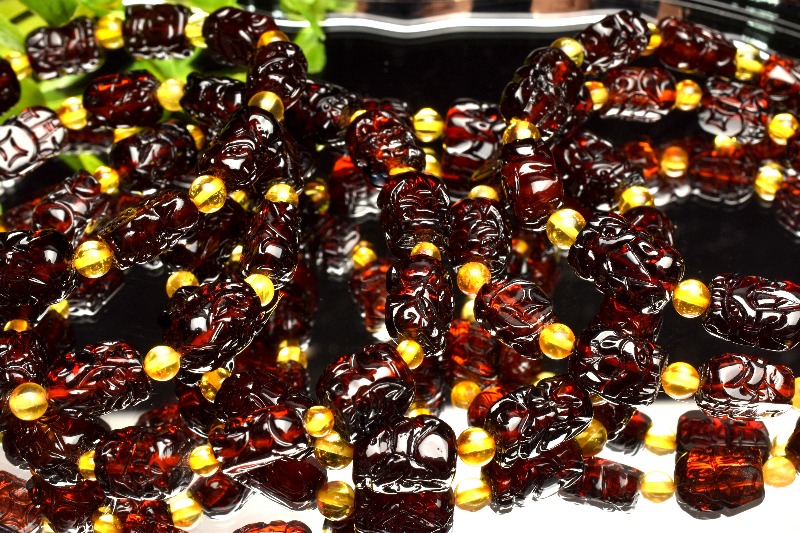 チェリーアンバーはイエローアンバーより赤みを帯びた、濃い茶色の琥珀を指します。赤の度合いが高いほど価値は高くなります。チェリーアンバーは大人の女性の情熱を引き出してくれるような、華やかな赤色系の琥珀です。