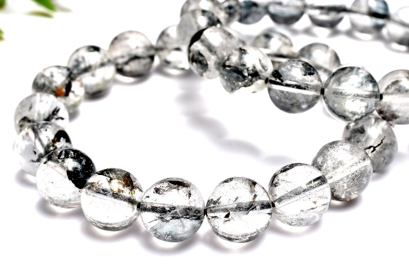 ヒマラヤ産◇グラファイト入り エレスチャルクォーツ(ヒマラヤ水晶) 9.5mm ブレスレット 1個売り _BG5799-95