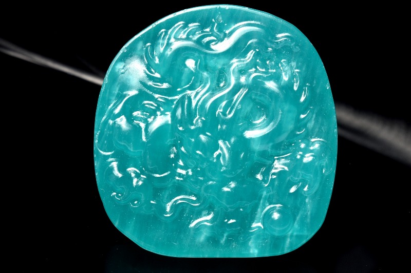 【1点物】高発色 アイスアマゾナイト 43x41mm 青龍彫刻(トップ穴) ルース _PC4290