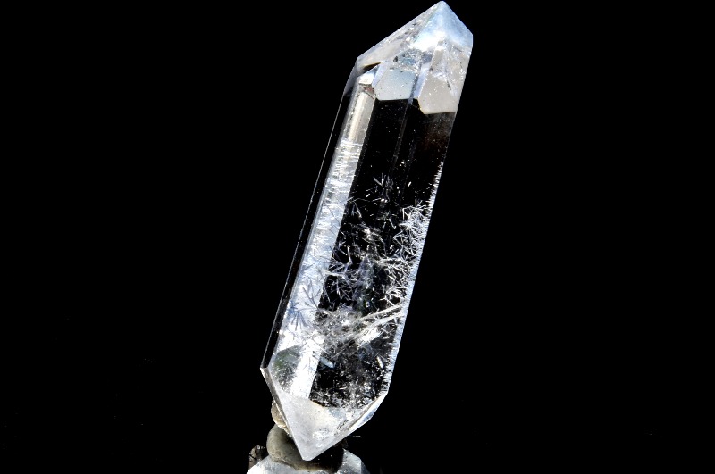 【1点物】AA希少◇透明 デュモルチェライトインクォーツ 27x8mm 両剣ポイント 原石 _PC4319