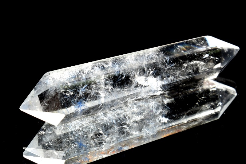 水晶の中でフワフワと青い華が咲いているような内包物が神秘的で美しいです。