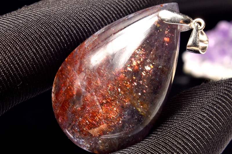 【1点物】AAA+☆Silver925 アイオライトサンストーン 36x24mm ドロップ ペンダントトップ _PC4361