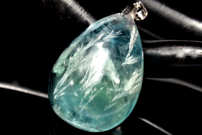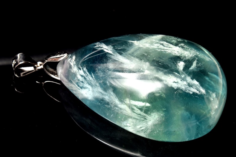 フェザーインフローライト(エンジェルフェザーフローライト・石花蛍石)は、フローライト(蛍石)の中に羽状の白い内包物が見られることからこう呼ばれています。