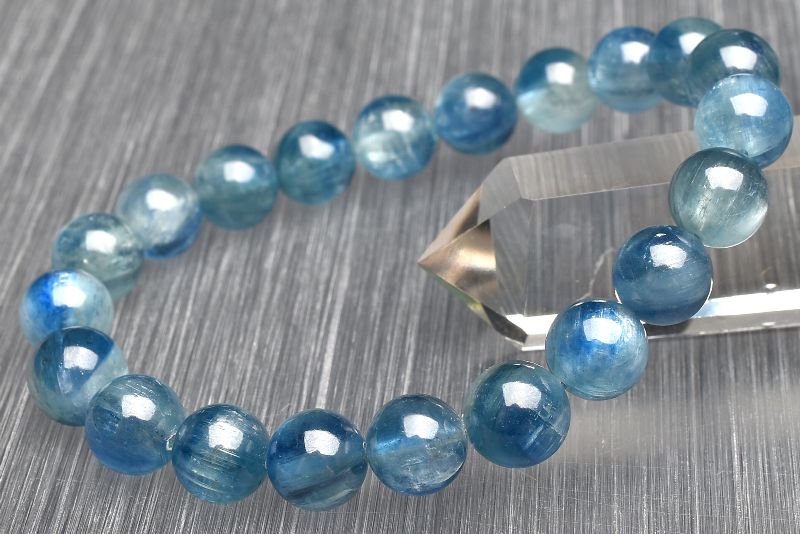 【1点物】天然色◇爽やか カイヤナイトシリカ 9mm ブレスレット _U6692