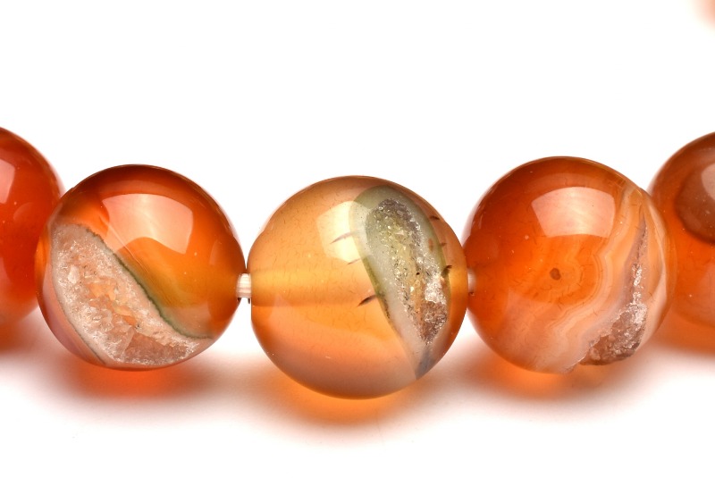 美しい赤色〜オレンジ色の半透明のメノウをカーネリアンと呼びます。しかし、メノウといっても、カーネリアンのエネルギーは決して保守的でも消極的でもありません。極めてバランスがとれているといえます。カーネリアンは「下腹部のチャクラ」を強め、人生に恋愛や楽しみをもたらすといわれています。トルマリンと同じように電気的なエネルギーが豊富にあるため、ヒーリングの効果はとても高く、スポーツの試合、武道や瞑想などにもプラスの効果を引き出します。