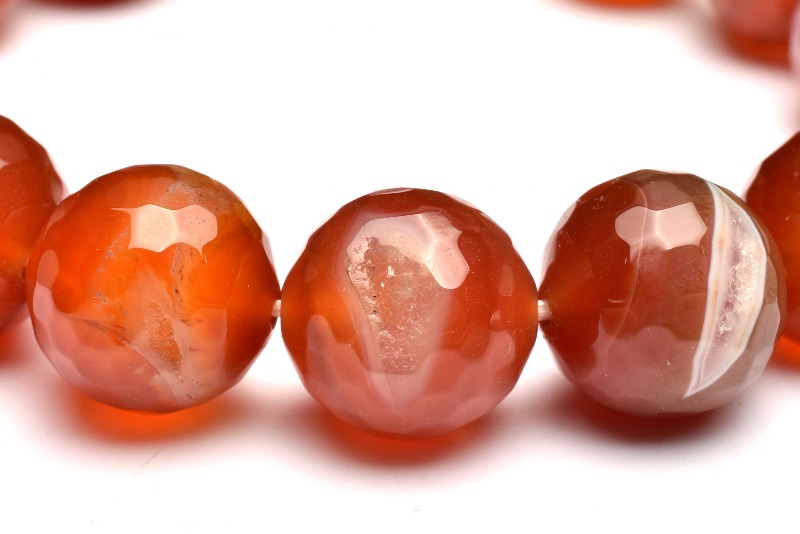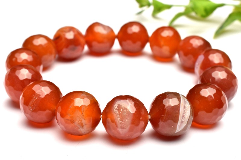 【1点物】大珠◇笑口ジオード カーネリアン赤瑪瑙 13-13.5mm 128面カット ブレスレット _MA4932