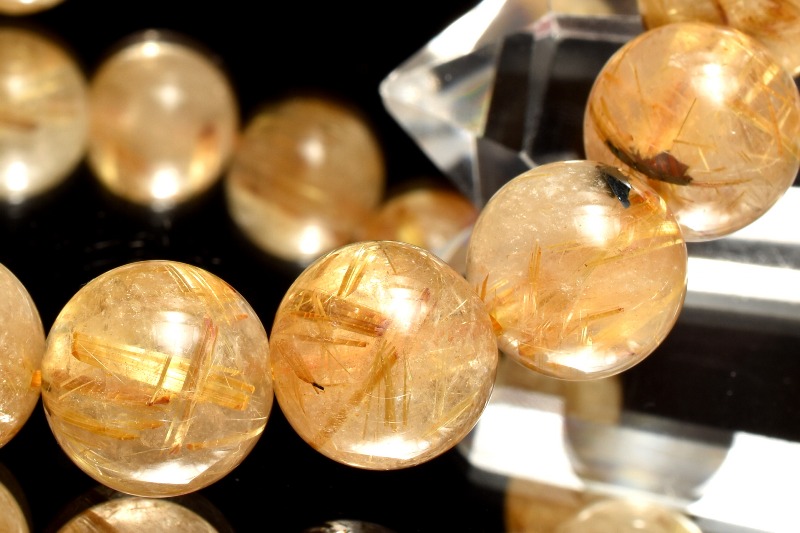 材質ヘマタイトインタイチンルチルクォーツ 12-12.5mm 産地:ブラジル