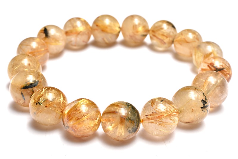 【1点物】金運上昇! ヘマタイトインタイチンルチルクォーツ 12-12.5mm ブレスレット _MA4944