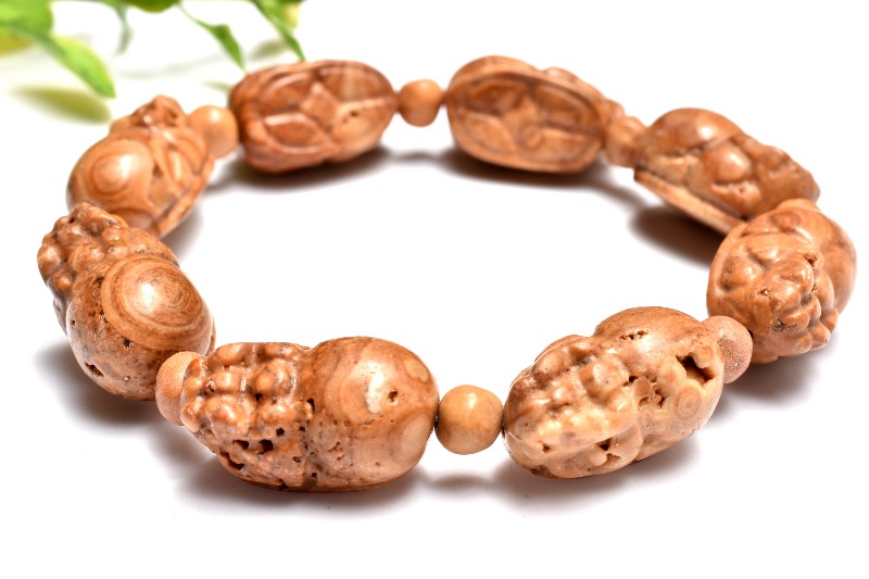特徴・意味大地の神秘をそのままに──このブレスレットは、龍宮舎利石の原石を丁寧に加工して貔貅に仕立て上げました。