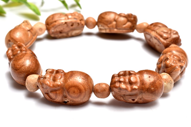 特徴・意味大地の神秘をそのままに──このブレスレットは、龍宮舎利石の原石を丁寧に加工して貔貅に仕立て上げました。