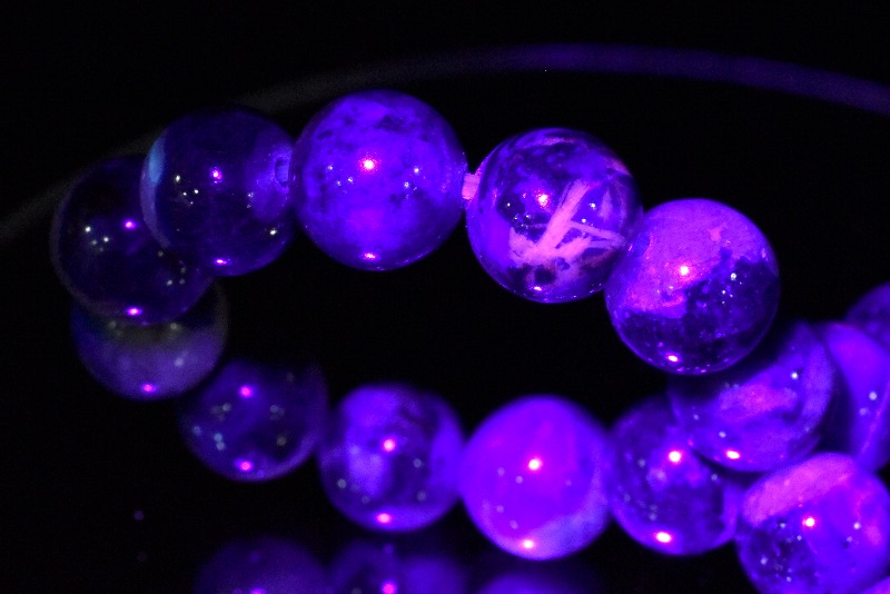 【1点物】希少◇発光鉱物 ブルーハックマナイトシリカ 8mm ブレスレット _MA5053