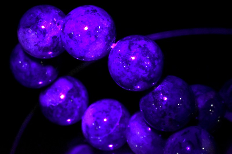 ハックマナイトは、ソーダライト(方ソーダ石)の変種で、紫外線で色が変わるファトクロミズムという不思議な特徴を持つパワーストーンです。