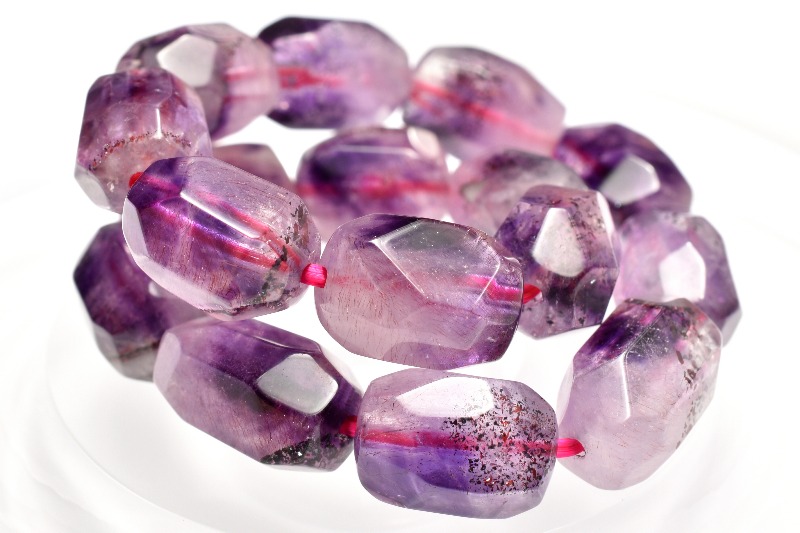 パワーストーンの定番アメジストに、細かなゲーサイトやレピドクロサイトが入っているアメジストスーパーセブンです。