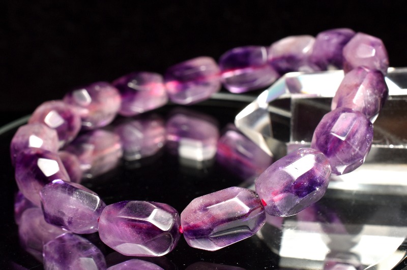 パワーストーンの定番アメジストに、細かなゲーサイトやレピドクロサイトが入っているアメジストスーパーセブンです。
