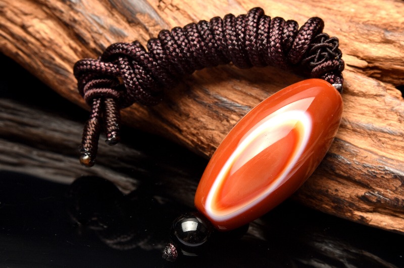 眼の模様が入った部分の原石を切り出し作られた天然の天珠です。