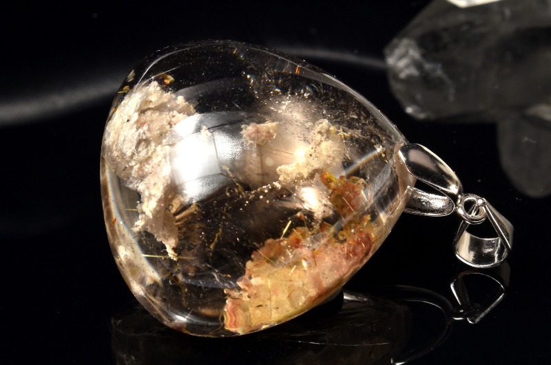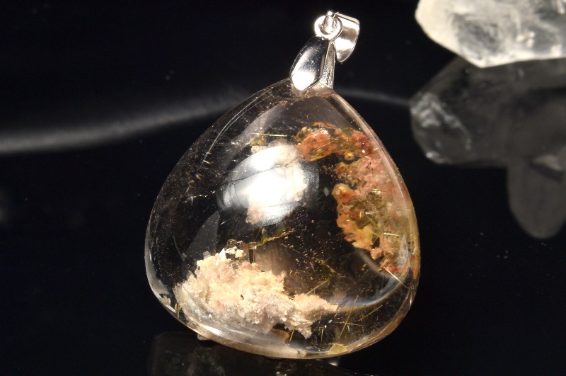 【1点物】Silver925◇希少ガーデン共生 ルチルクォーツ 25x25mm ドロップ ペンダントトップ _PC4482