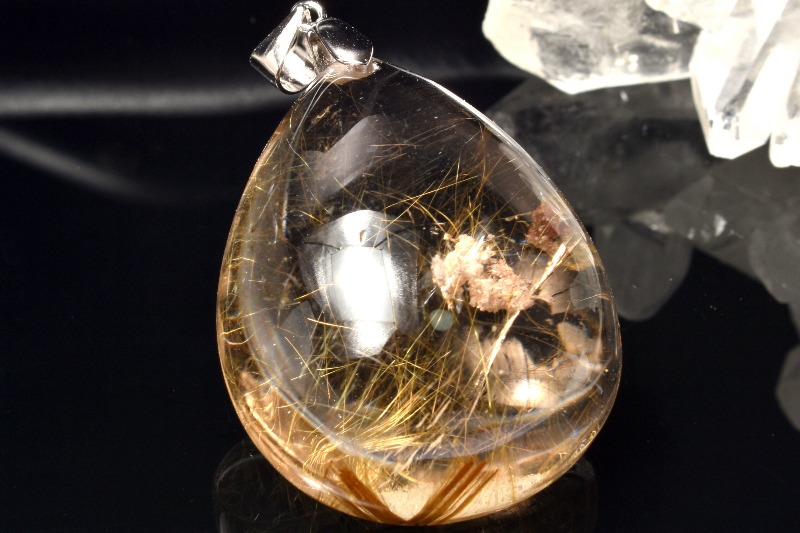 ルチルクォーツは、和名で『金紅石入り水晶』と呼ばれます。ラテン語で『黄金色に輝く』という意味の言葉が語源です。