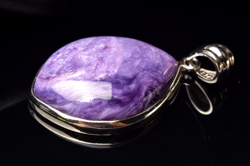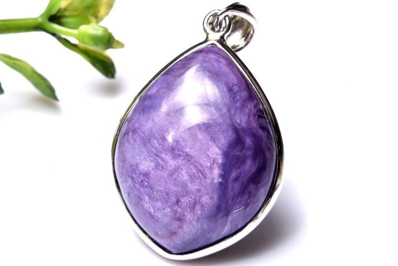 チャロアイトという名前の由来には、シベリアのチャロ川流域で発見された事とする説と、ロシア語の(Charo魅惑)から名づけられたという説がありますが、後者の方が有力であるとされています。その名の通り、この石の個性的な模様は、見る人を魅了してやみません。まさに、「魅惑の宝石」にぴったりな石です。