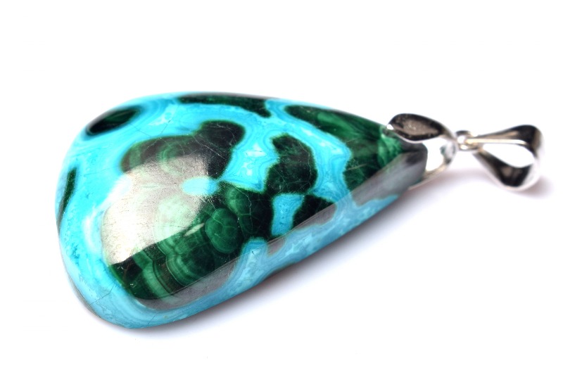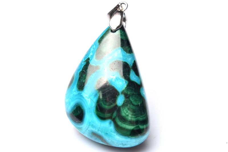 【1点物】Silver925◇希少高品質 クリソコラインマラカイト 30x19mm ドロップ ペンダントトップ _PC4494