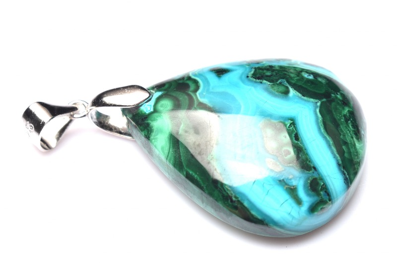 【1点物】Silver925◇希少高品質 クリソコラインマラカイト 25x23mm ドロップ ペンダントトップ _PC4496