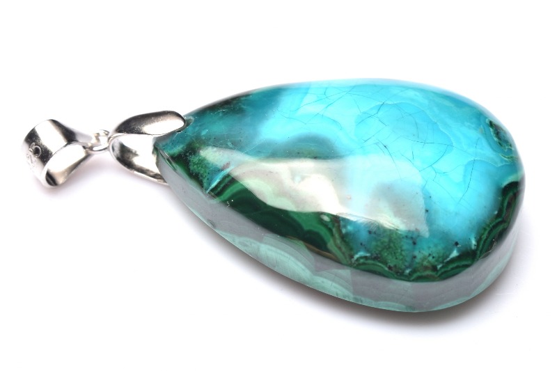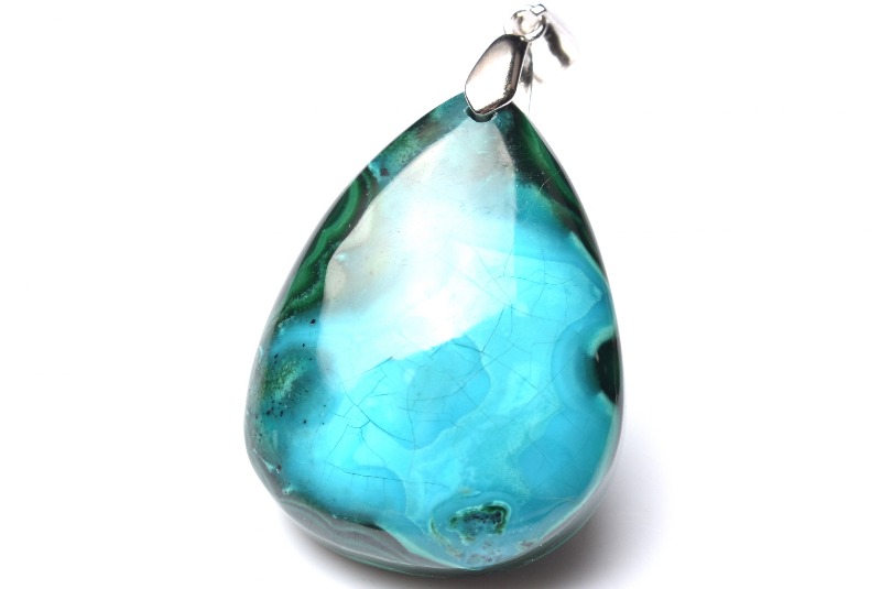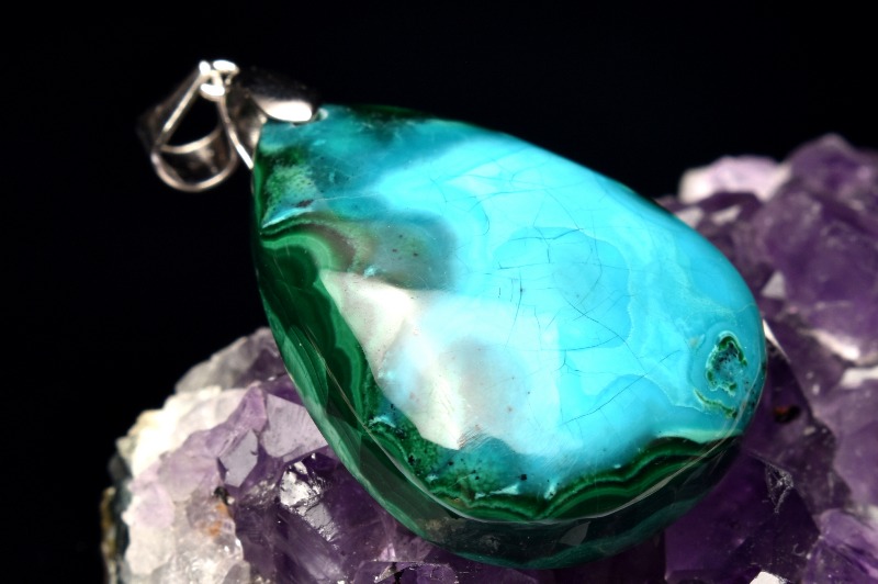 ブルーが本体の多くを占め、グリーンやブラウンなどのカラーが混ざり合って、出来ているため、丸く加工されたクリソコラは、宇宙から見た地球のような外観となっています。