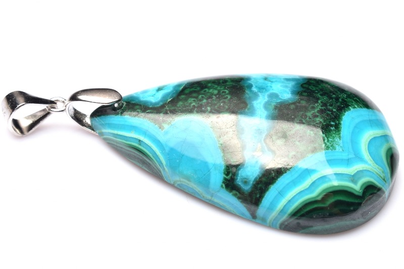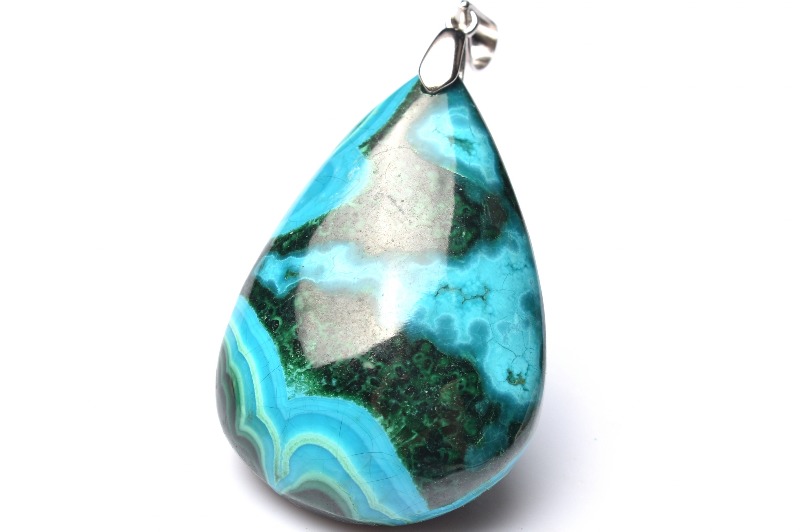 ブルーが本体の多くを占め、グリーンやブラウンなどのカラーが混ざり合って、出来ているため、丸く加工されたクリソコラは、宇宙から見た地球のような外観となっています。