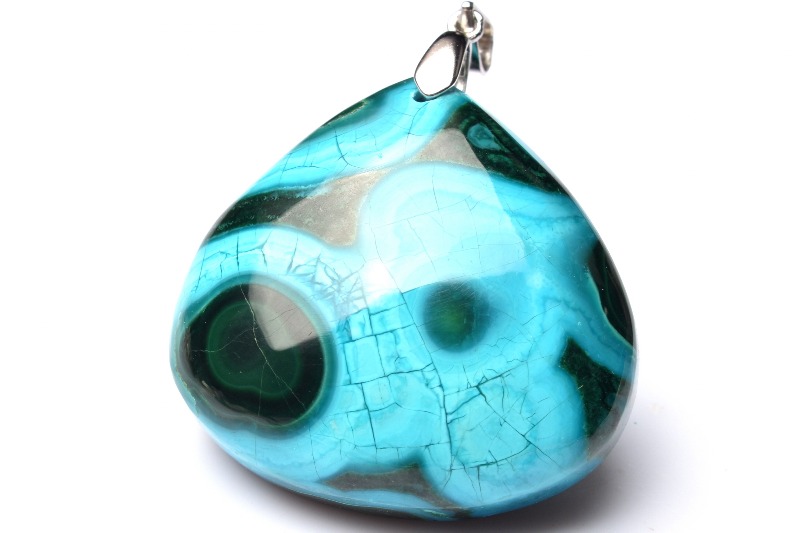ブルーが本体の多くを占め、グリーンやブラウンなどのカラーが混ざり合って、出来ているため、丸く加工されたクリソコラは、宇宙から見た地球のような外観となっています。
