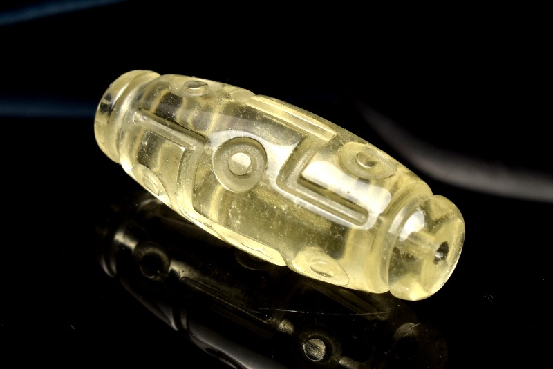【1点物】AAA激レア☆透明レモンカラー リビアングラス 27x10mm 九眼天珠 ビーズ _PC4555